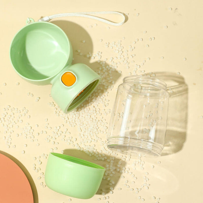 - Dual-Purpose Design: With its versatile design, this water bottle not only provides hydration, but also allows you to conveniently feed your dog on-the-go. It's perfect for both water (up to 400ml) and food (up to 182g).